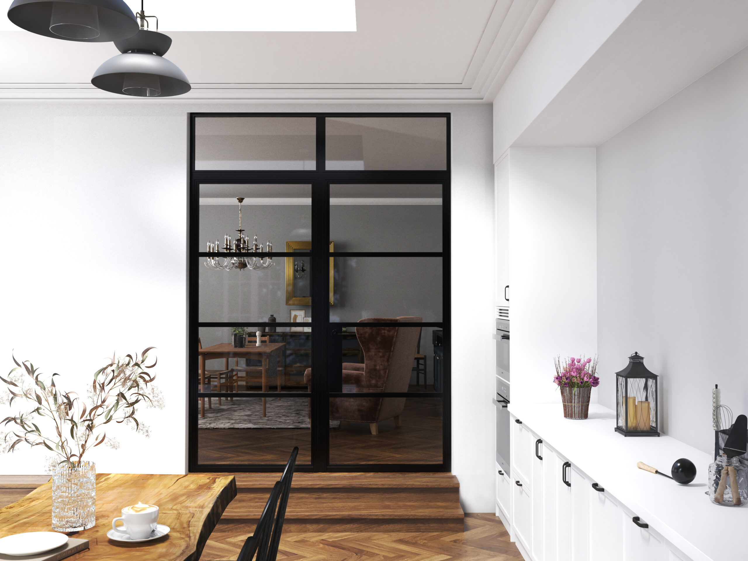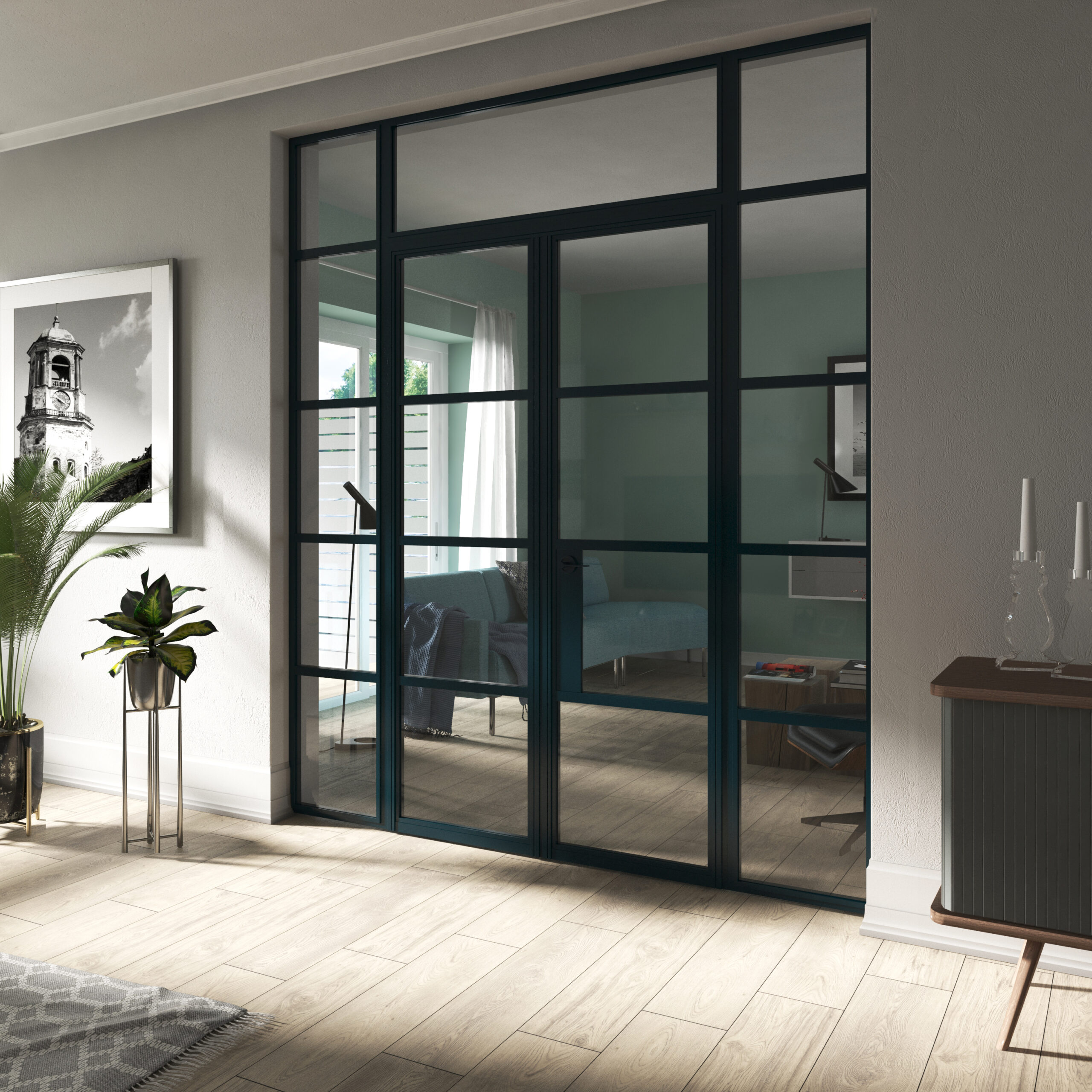 Refined aluminium internal doors for modern spaces.